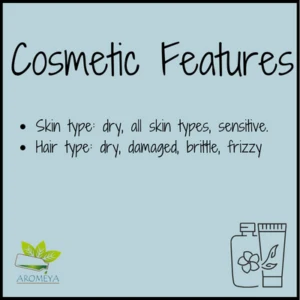 Cocoa butter from Madagascar sold by Aromeya is effective in the following cases: • Dry and damaged hair • Dry skin • Mature skins