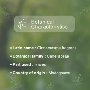 Saro essential oil is extracted from the leaves of a tree native to Madagascar, Cinnamosma fragrans. This small tree grows in the tropical regions of the island and is renowned for its therapeutic properties.