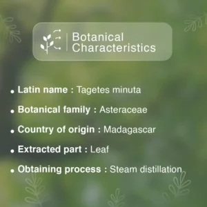 Tagetes minuta essential oil is distinguished by its many benefits. Originally from South America, this plant is now mainly cultivated in Madagascar, where it reveals its full potential. This precious essence offers a wide range of remarkable therapeutic and aromatic properties: