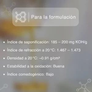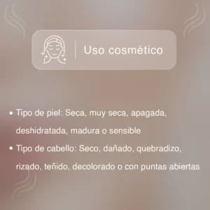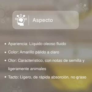 Es hidratante, regenerador, protector y antioxidante, gracias a su riqueza en vitaminas C, E y ácidos grasos esenciales.