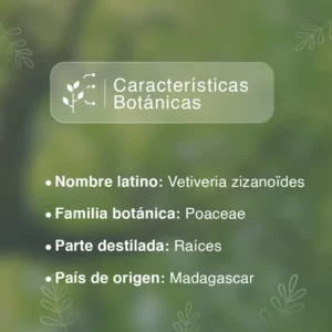 Un buen aceite esencial de vetiver debe tener las siguientes características. No dude en solicitarlas a su proveedor para asegurarse de la calidad de su aceite.