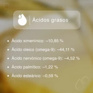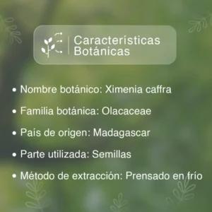 El aceite vegetal de Ximenia comercializado por Aromeya posee principalmente las siguientes propiedades