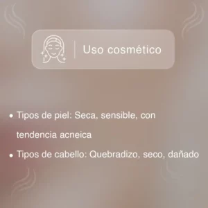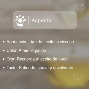 Es hidratante, regenerador, protector y nutritivo, gracias a su riqueza en ácidos grasos esenciales y compuestos antioxidantes.