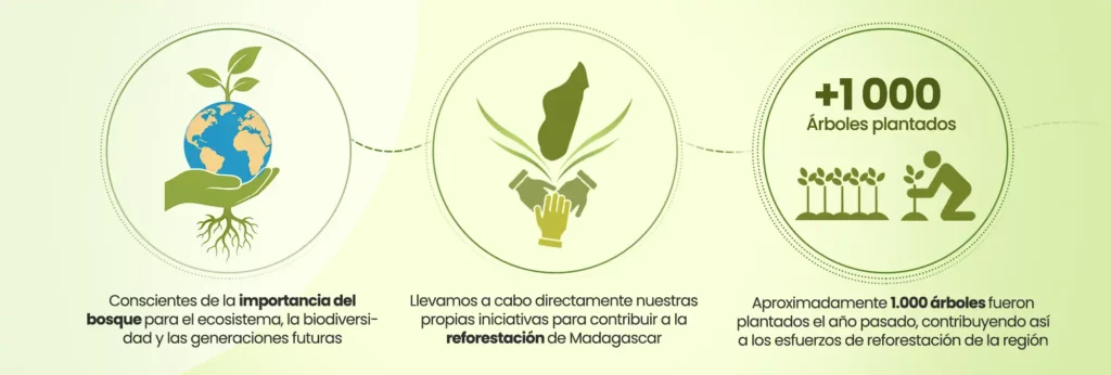 En Aromeya, la preservación de los bosques de Madagascar está en el corazón de nuestro compromiso. Conscientes de la importancia de la biodiversidad para las generaciones futuras, actuamos de manera concreta para contribuir al reforestamiento sostenible de Madagascar.
