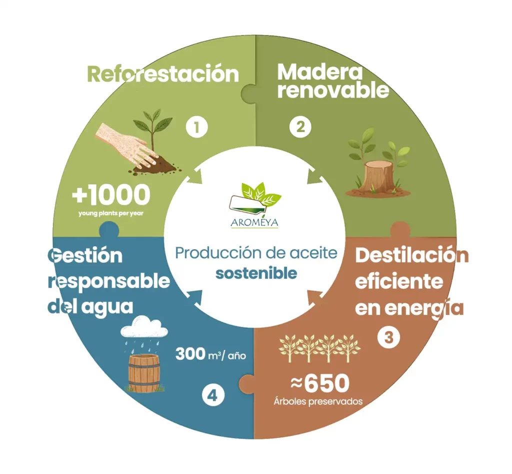 En Aromeya, la naturaleza no es solo un recurso: es un verdadero socio. Conscientes de que el equilibrio ambiental de Madagascar depende de la riqueza de sus bosques y recursos naturales, hemos desarrollado un modelo de producción que combina rendimiento y respeto por el ecosistema.