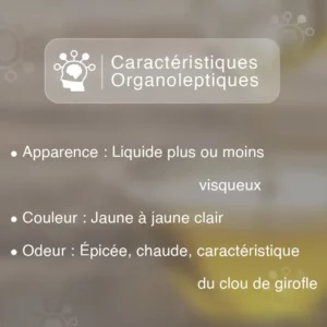 Une bonne huile essentielle de clou de girofle doit avoir les caractéristiques suivantes. N'hésitez pas à les demander à votre fournisseur pour être sûr de la qualité de votre huile.