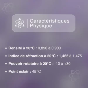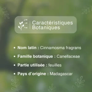 L’huile essentielle de Saro, également connue sous le nom de mandravasarotra, se distingue par sa richesse en composés aux multiples bienfaits. Cette diversité moléculaire lui confère un large éventail de propriétés thérapeutiques et aromatiques remarquables. Parmi ses caractéristiques notables, on peut citer: