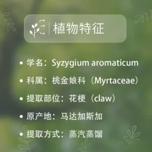 丁香精油的主要成分为丁香酚、丁香酚乙酸酯和β-石竹烯。这些主要成分赋予丁香精油以下功效:
