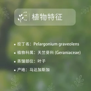 马达加斯加天竺葵精油主要富含香茅醇和香叶醇等成分。这些不同的分子赋予天竺葵精油以下主要功效: