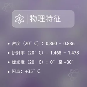 应以1%至3%的比例稀释在植物油中(如霍霍巴油、夏威夷果油或甜杏仁油)使用,以确保安全并发挥最佳效果。