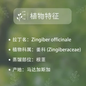 它是通过蒸汽蒸馏新鲜或干燥的姜根提取的。这种热带植物在马达加斯加被广泛种植,以其浓郁的香气和提神功效而闻名。